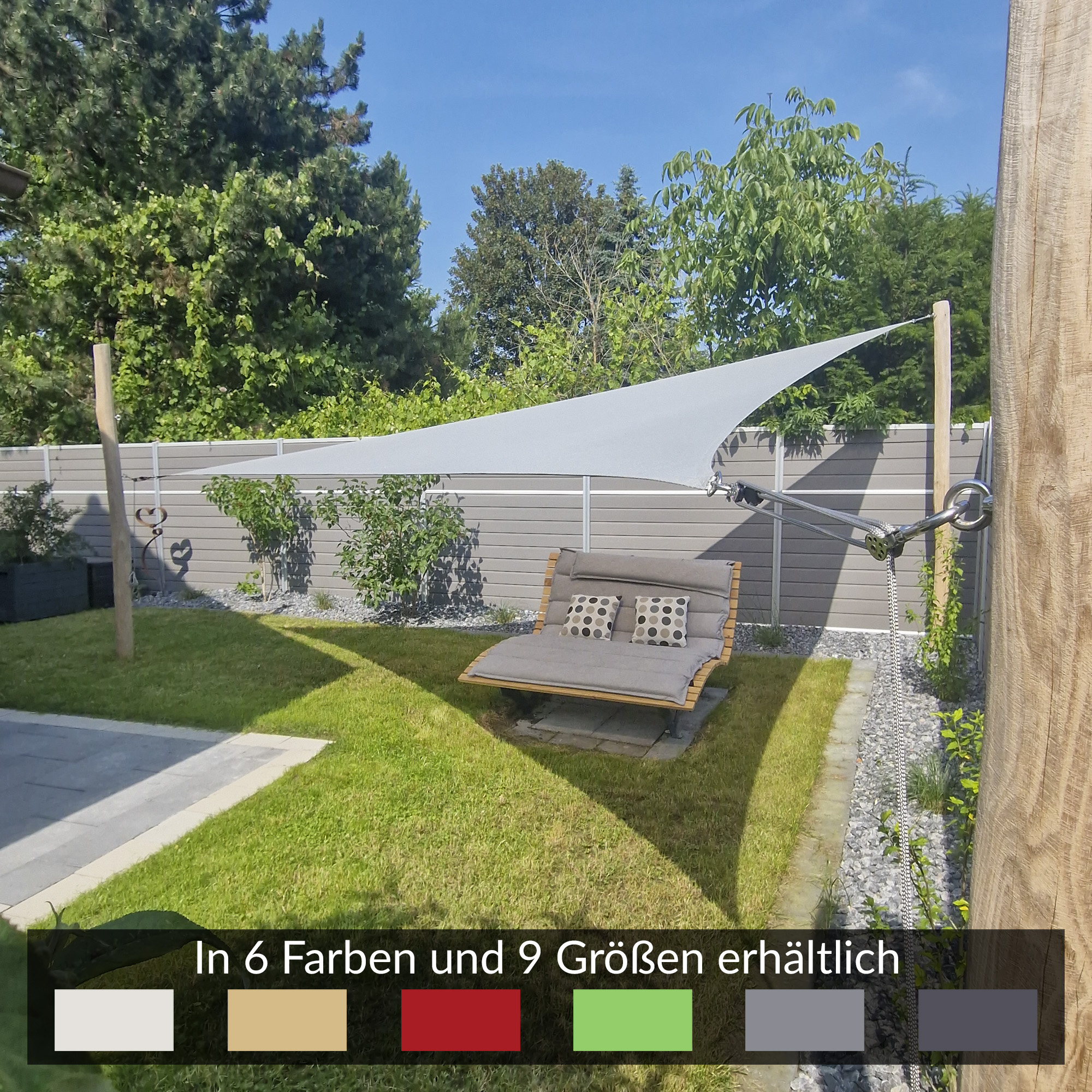 Bereichern Sie Ihren Garten mit diesem Dreieck-Sonnensegel-Komplettset um ein weiteres Highlight! Sie haben Fragen zu unseren Produkten oder wünschen sich eine Beratung? Wir stehen Ihnen gerne mit Rat und Tat zur Seite! Wie Sie uns erreichen, erfahren Sie im Kontaktformular.Regendicht auf der ganzen Länge