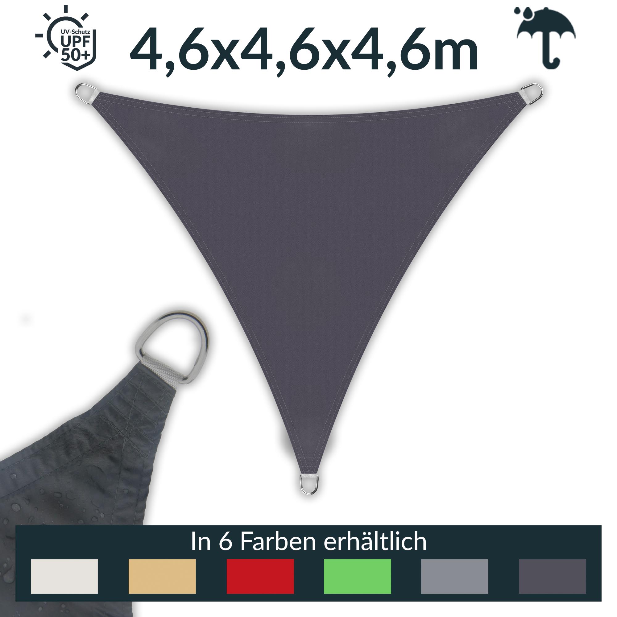 Sonnensegel dreieckig 4,6x4,6x4,6m regendicht UPF50+