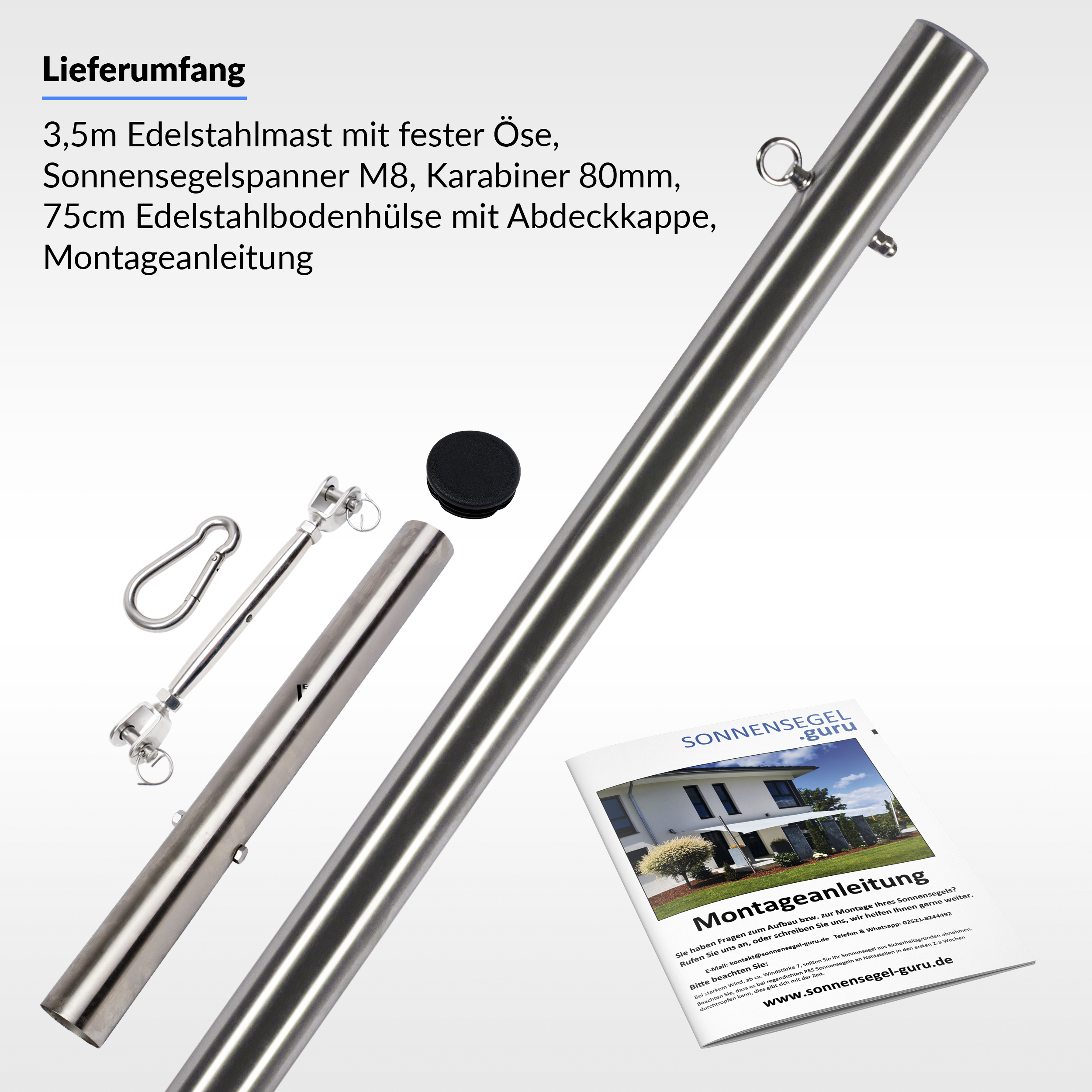 Sonnensegel.guru: 5 Jahre Garantie auf Masten und Befestigungsmaterialien